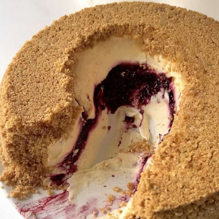 Flip cheesecake upside-down and scoop yourself a slice. Enjoy every bite with lots of lots of buttery crust!